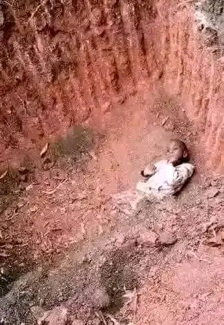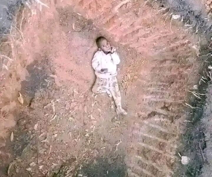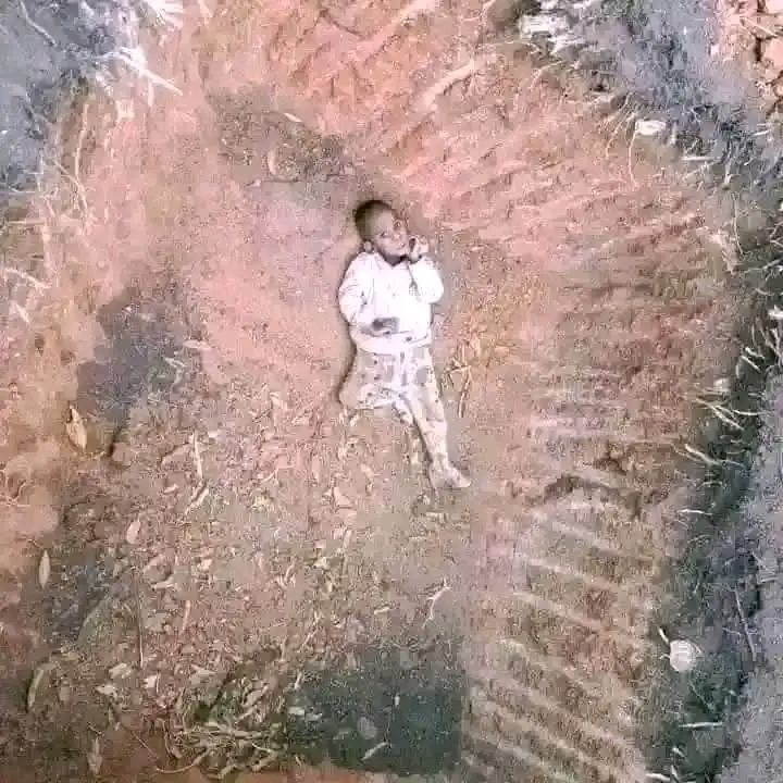 Images now circulating widely online show the young child lying in the dirt at the bottom of the pit and later being rescued by concerned locals and what appears to be a uniformed officer. The child, though visibly weak, appeared conscious and responsive during the rescue.