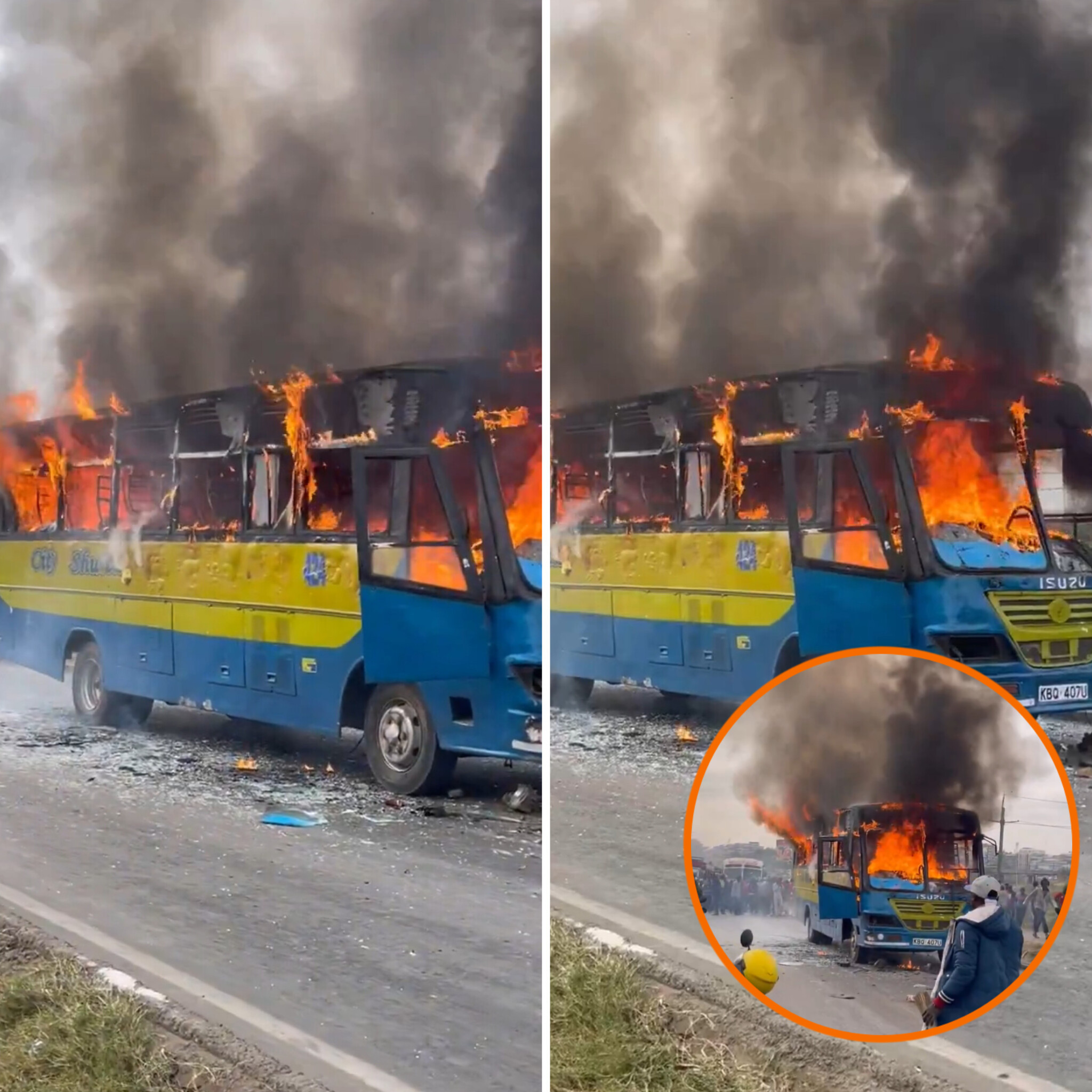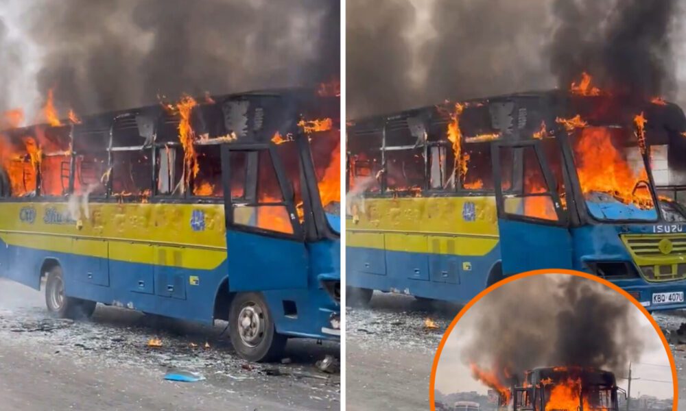 Angry Mob Torches Matatu After Boda Rider Beheaded in Crash