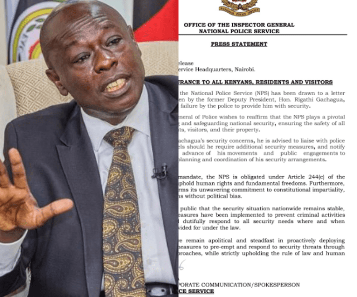 Ex-DP Rigathi Gachagua Accuses Police of Plotting His Murder – NPS Responds.