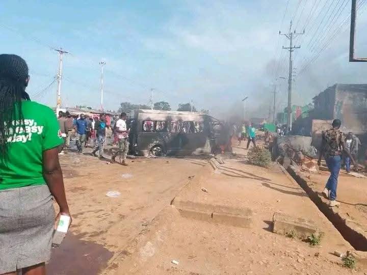 A fatal road accident in Luanda, Vihiga County, has triggered violent protests, culminating in the burning of a Nissan matatu by an enraged mob of bodaboda riders.