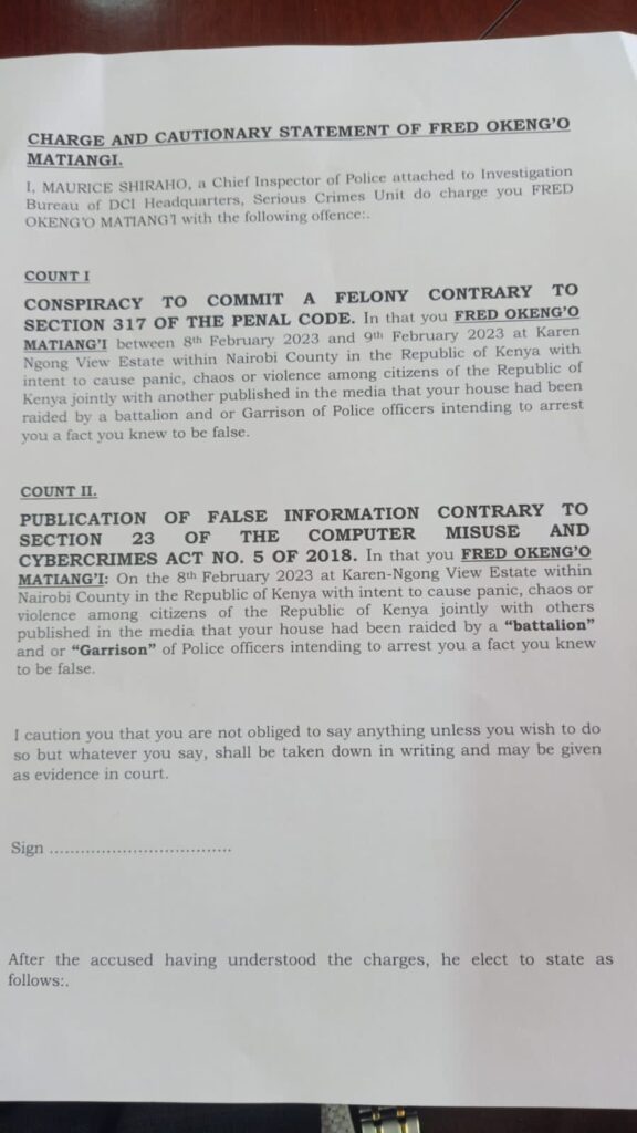 Matiang’i is further accused of having an intention to break peace and causing violencev in the country.
