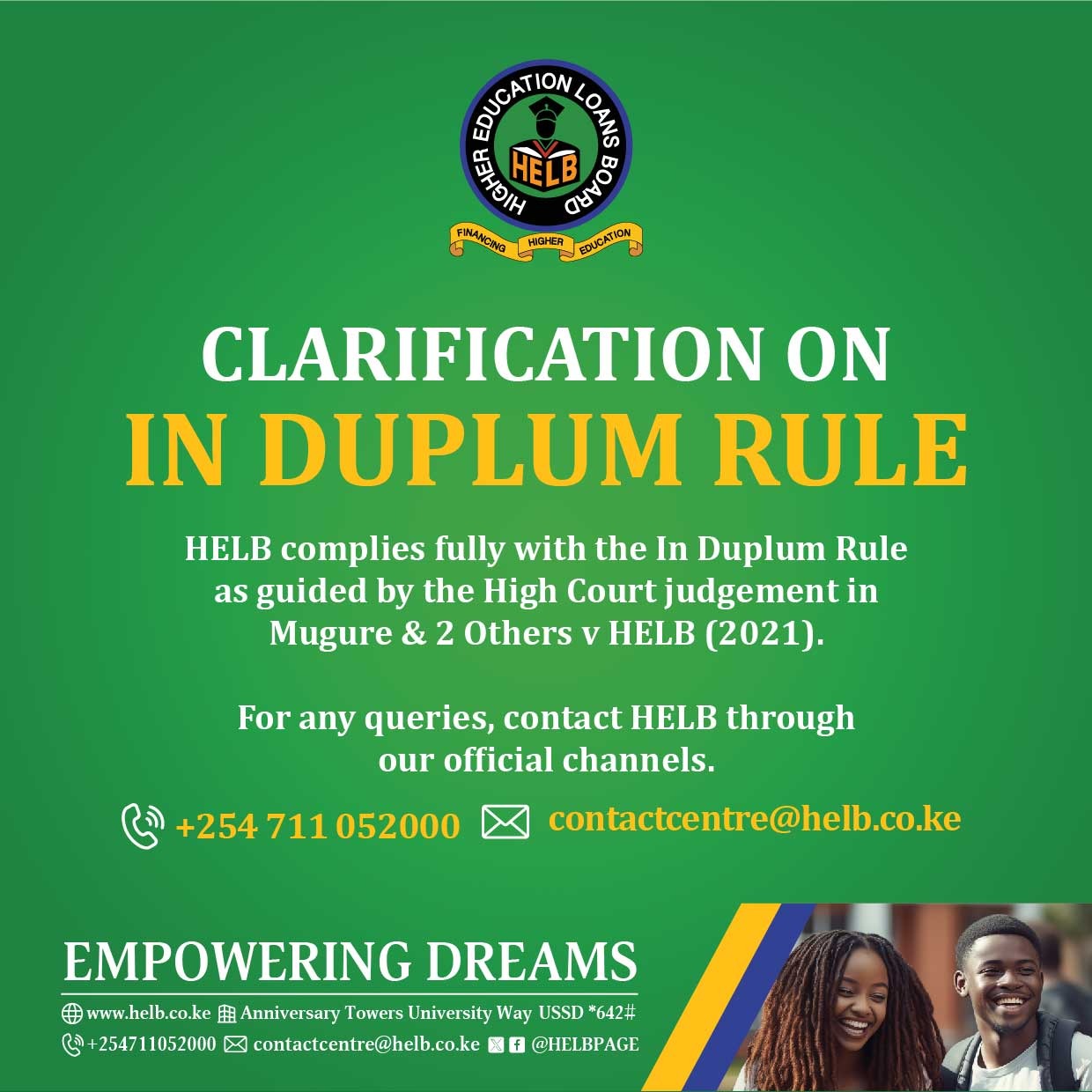 - Lack of legislative clarity previously allowed HELB to bypass in duplum