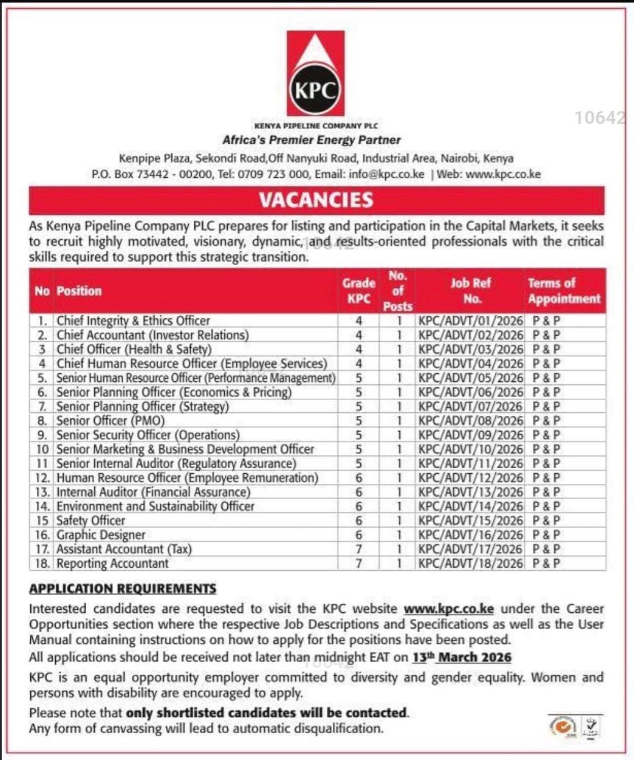 The recruitment exercise comes as Kenya Pipeline Company prepares for major institutional changes, including greater engagement with capital markets and stronger compliance frameworks. The company’s mission centers on delivering safe, reliable, and sustainable energy solutions while maintaining high operational standards.