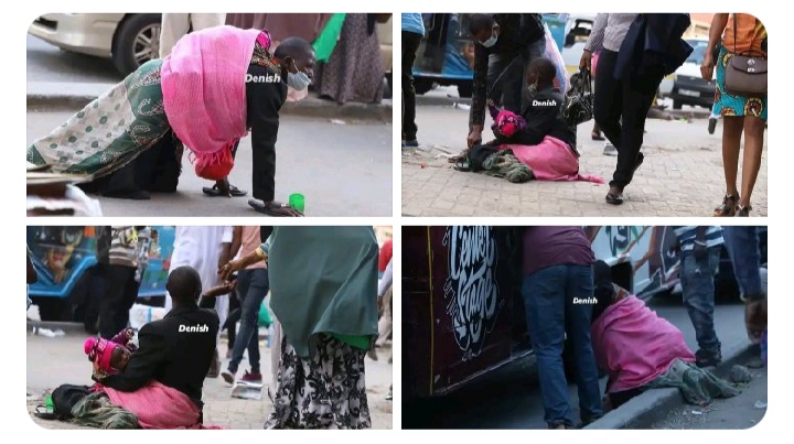 “In this photo, this mother here with a kid is on the streets begging, a good person with a golden heart will dig deeper into his/her pockets to help this disabled mama.