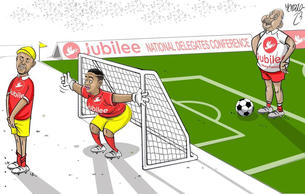 President Uhuru Kenyatta could be seen standing in the wrong direction of score, probably implying he doesn’t know he is out of the party.