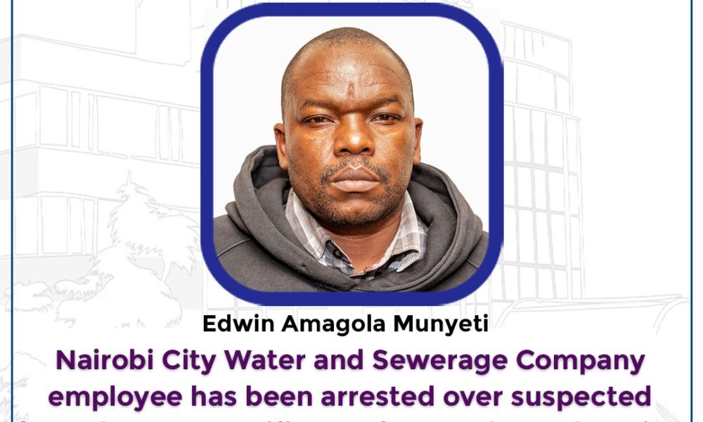 Nairobi, Kenya – May 12, 2025 – A major scandal has rocked the Nairobi City Water and Sewerage Company (NAWASCO) following the arrest of one of its long-serving employees, Edwin Amagola Munyeti, over allegations of using a forged academic certificate to land a government job and fraudulently pocket over Ksh9 million in salaries.