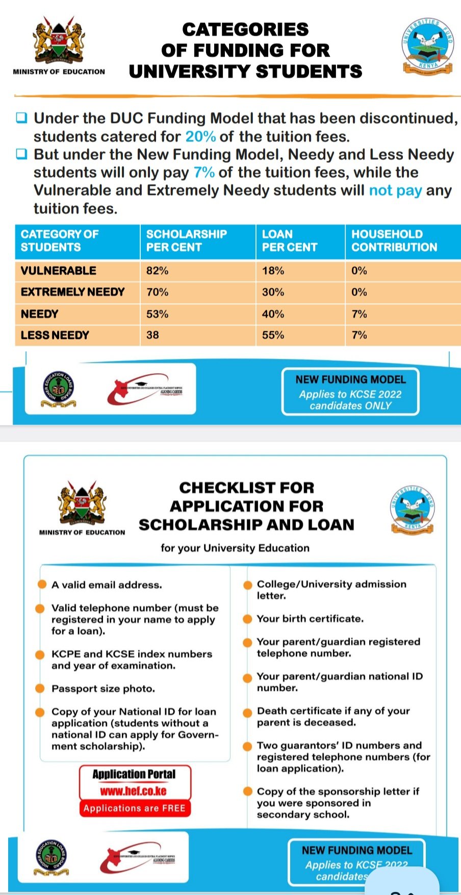 The checklist of the requirements for applying for government funding in the new funding model for students who sat for KCSE in...