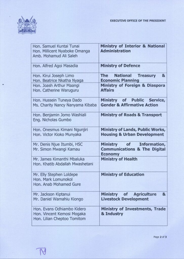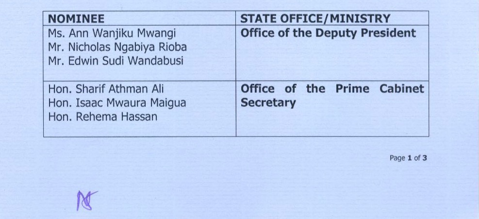 President William Samoe Ruto has reportedly nominated Chief secretaries according to the latest press release by Hussain Muhammed.