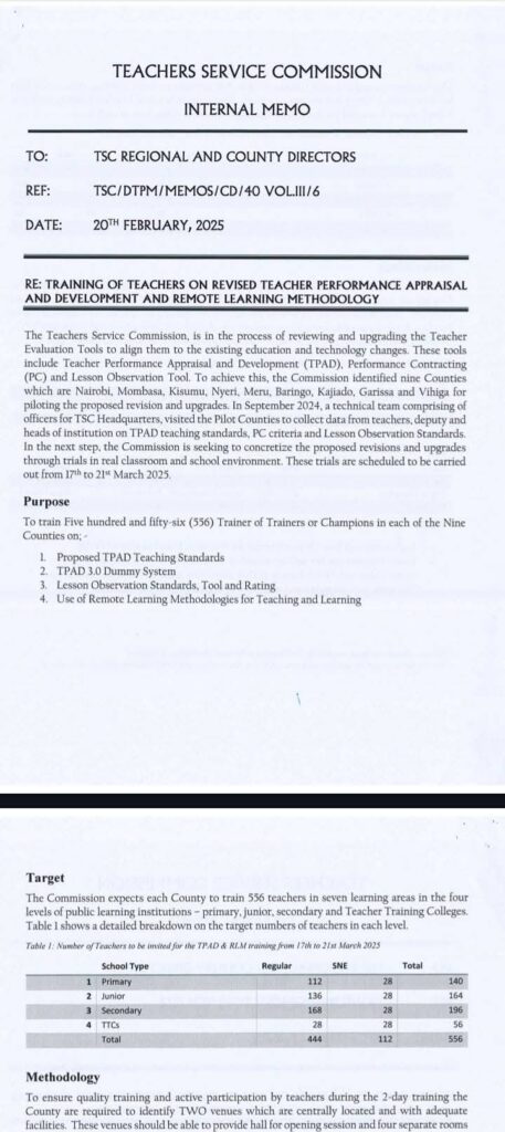 In a groundbreaking initiative set to reshape the landscape of education in Kenya, the Teachers Service Commission (TSC) has announced a comprehensive training program aimed at enhancing teacher performance and integrating remote learning methodologies. Scheduled for March 2025, this ambitious project will pilot revised Teacher Performance Appraisal and Development (TPAD) tools across nine counties, marking a significant step towards aligning educational standards with contemporary technological advancements.