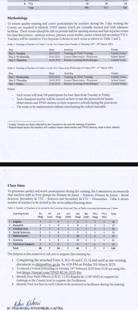 The TSC has called for the support of regional and county directors to ensure the successful implementation of the training program. Key actions include: