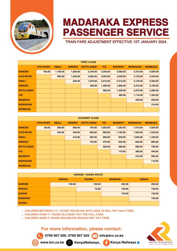 “Customers making advance purchases for the Madaraka Express Passenger Service will notice