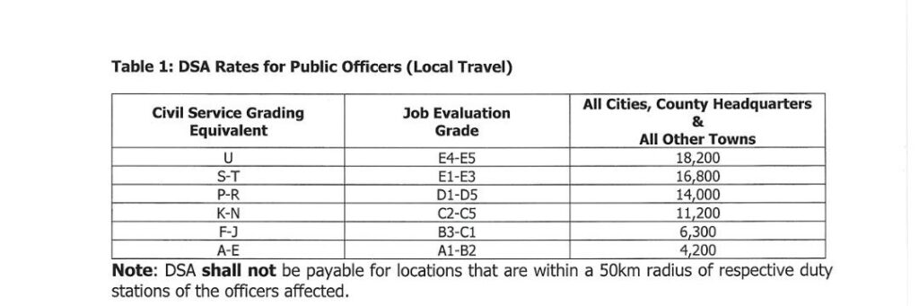 Consequently, SRC advises on DSA (Local and Foreign Travel) rates payable to public officers as follows: DSA (Local Travel):