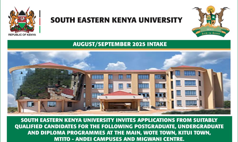 Kitui, Kenya – South Eastern Kenya University (SEKU) has officially opened applications for its August/September 2025 intake, offering a wide range of postgraduate, undergraduate, diploma, and certificate programmes across multiple campuses. With over 100 programmes in fields like Health Sciences, Business, Engineering, Agriculture, and Education, SEKU continues to be a top choice for students seeking quality higher education in Kenya.