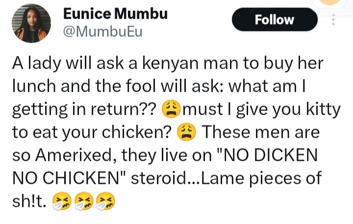News Woman makes a damning revelation about Kenyan men. By K47 Digital news team Posted on September 3, 2023 Share Tweet Share Share Email Comments Spread the love a woman has made a damning revelation about Kenyan men. Spread the loveREAD ALSO Mark Zuckerberg Expresses Regret Over Biden Administration's COVID-19 Content Censorship, Announces Political Shift Related Items: Share Tweet Share Share Email